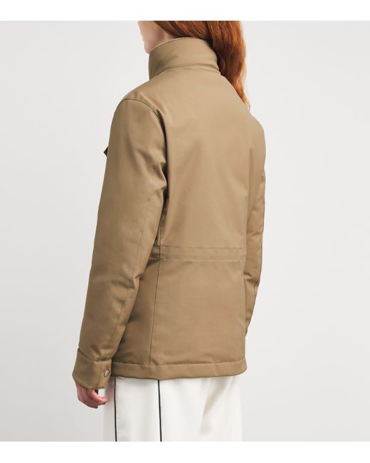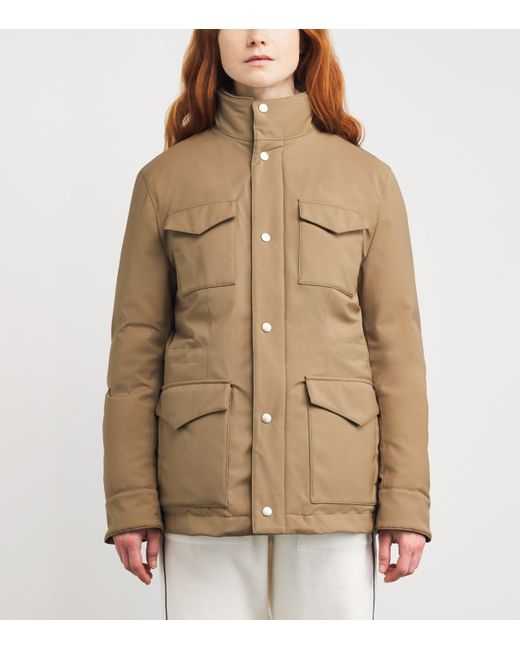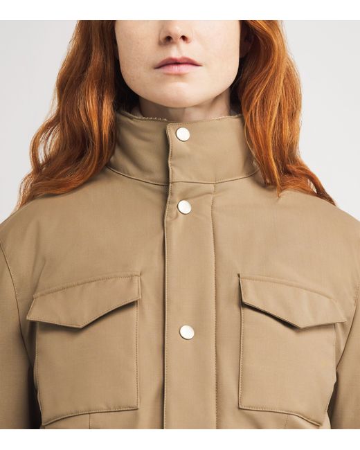 Designed to protect you from cold weather conditions, this Eleventy jacket elegantly shields you from the rain and snow thanks to meticulous Italian craftsmanship. Made with technical nylon, the safari style silhouette houses a filling of goose down and feathers, ensuring you remain warm no matter where your trek may be.
