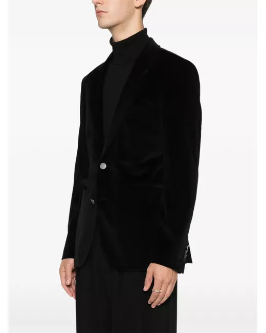black textured panel front button fastening peaked lapels long sleeves four-button cuffs