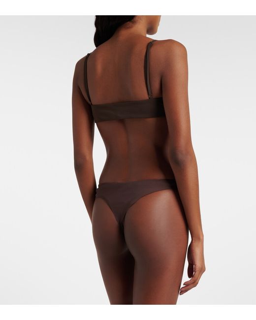 Material: 72% polyamide, 28% elastane. Care instructions: hand wash. Made in China. Designer color name: Umber. Item color: brown. Details: 50% brass, 50% natural stone. Includes: garment bag.