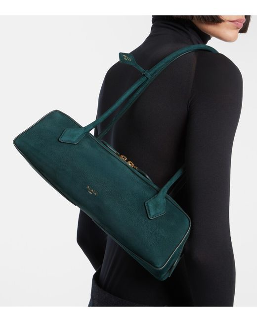 Material: leather (suede). Lining: suede. Made in Italy. Designer color name: Vert Foret. Item color: green. Internal details: card slot. Closure: two-way zipped top. Top handles. Hardware color: gold. Includes: dust bag, mirror. Leather.