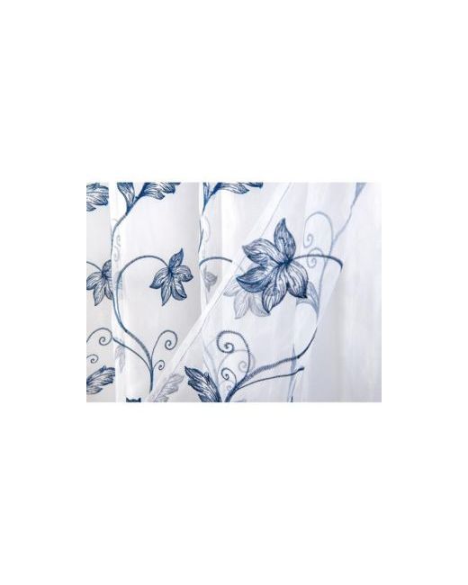 Dark Blue Pia Embroidered Panel With Double Valance 54 x 90 White