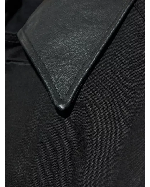 black leather collar button fastening front pocket long sleeves buttoned cuffs