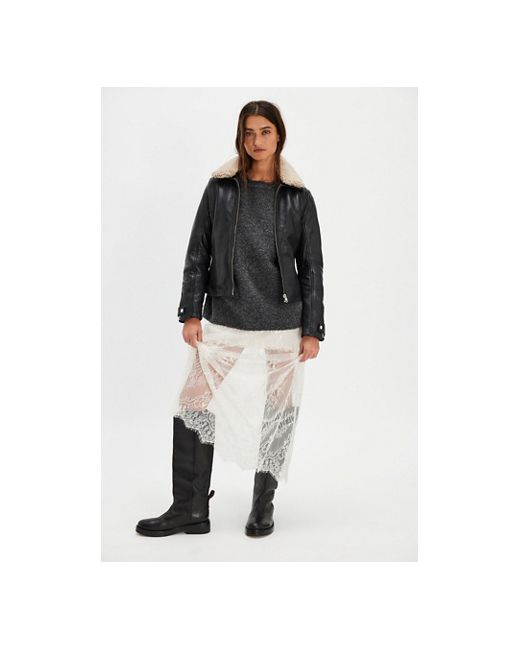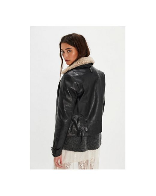 Layer up in style with this stunning aviator-inspired jacket from Mauritius, featuring a sleek, tailored silhouette, a buttery leather fabrication, and a faux sherpa collar for a contrasting design. * Long sleeves * Front zipper closure * Zippered cuffs Mauritius Tammy Leather Jacket by Mauritius Leather at Free People in Black, Size: US 4