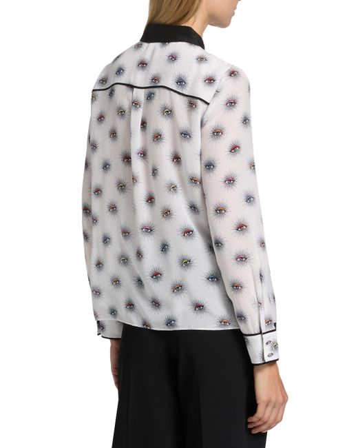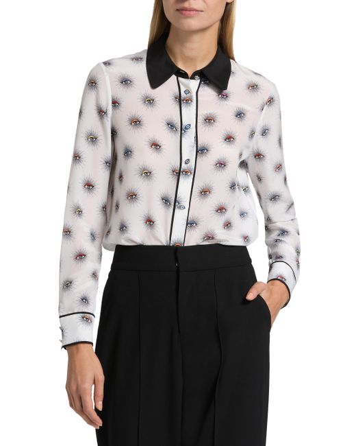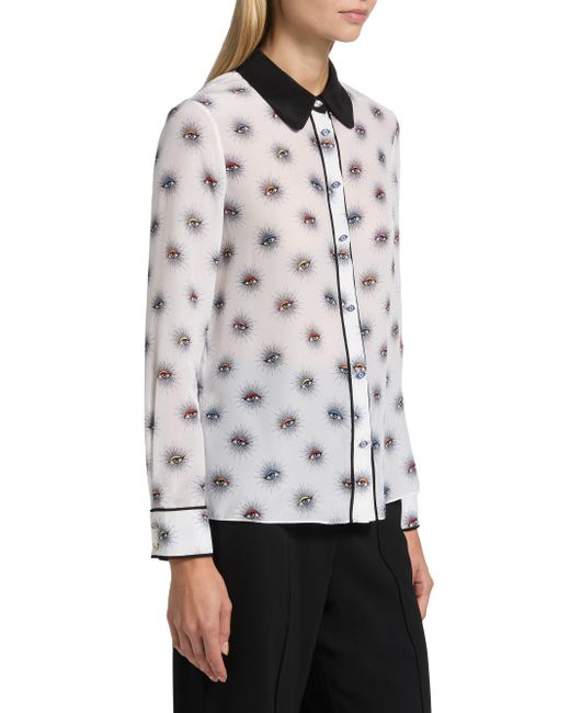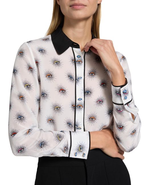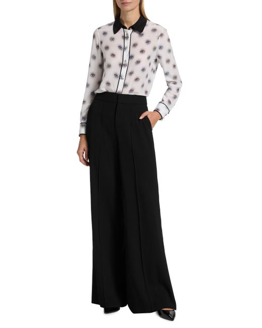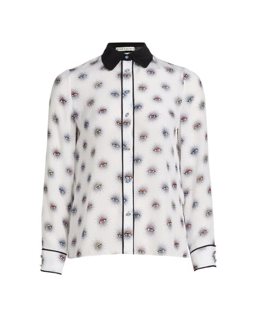 Mixed with a printed weave and solid piped trims, Alice + Olivia's Willa Combo placket silk top features a spread collar, button cuffs, and a concealed closure. Spread collar Long sleeves, button cuffs Concealed button-front closure 100% silk Dry clean Imported SIZE & FIT About 24" in from shoulder to hem Model measurements: 5'10" tall Model is wearing a US size Small ABOUT THE BRAND Founder Stacey Bendet has been embracing bold color, eclectic prints and an overall passion for whimsy since launching Alice + Olivia in 2002. From party-ready dresses to statement tops and everything in between, she's created a playful and overtly feminine aesthetic that's uniquely her own. Contemporary Sportswear - Alice + Olivia > Alice + Olivia > Saks Fifth Avenue. Alice + Olivia. Color: Visionary. Size: XS.