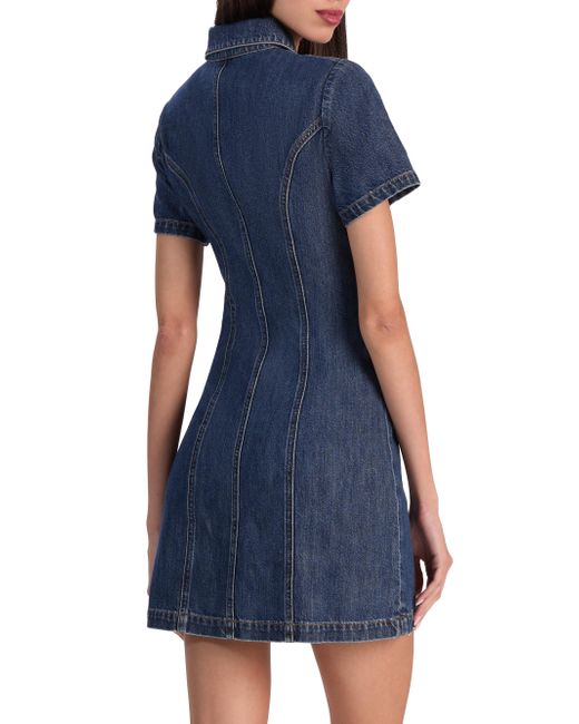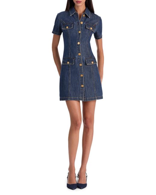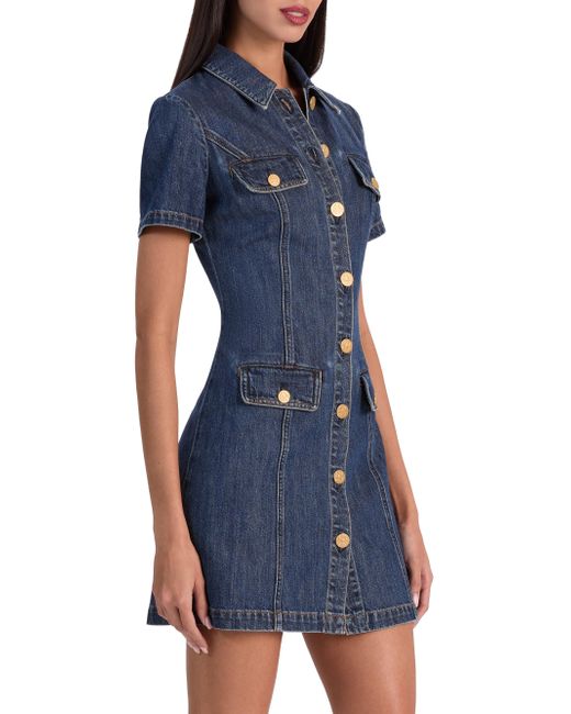 Crafted of cotton denim, the Jamie minidress from Alice + Olivia features a tailored button-front silhouette with a spread collar and flap pockets. Goldtone crest buttons finish the design. Spread collar Short sleeves Chest and side button-through flap pockets Button-front closure 100% cotton Lining: 98% polyester/2% elastane Dry clean Imported SIZE & FIT About 33" from shoulder to hem Model measurements: 5'10" tall Model is wearing a US size 4 ABOUT THE BRAND Founder Stacey Bendet has been embracing bold color, eclectic prints and an overall passion for whimsy since launching Alice + Olivia in 2002. From party-ready dresses to statement tops and everything in between, she's created a playful and overtly feminine aesthetic that's uniquely her own. Contemporary Sportswear - Alice + Olivia > Alice + Olivia > Saks Fifth Avenue. Alice + Olivia. Color: Cambria Vintage. Size: 0.