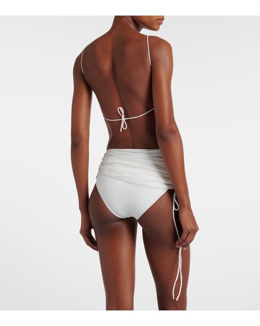 Material: 72% polyamide, 28% elastane. Care instructions: hand wash. Made in China. Designer color name: White. Item color: white. Details: 100% brass. Closure: self-ties. Includes: dust bag.