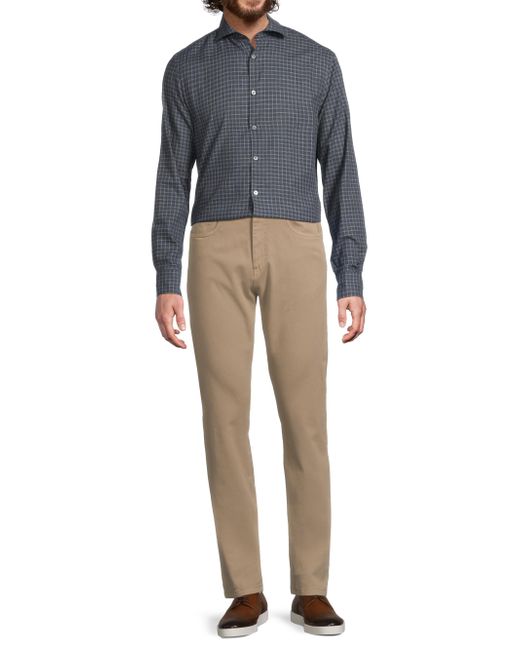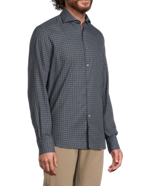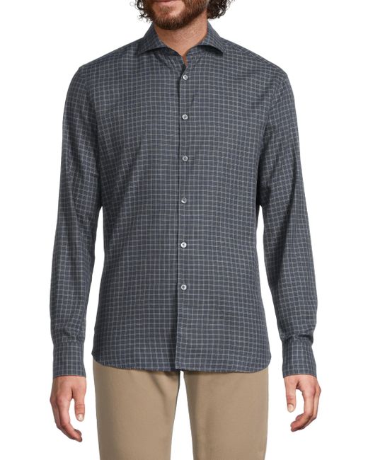 Crafted of cotton in Italy, this button-front sport shirt from Canali features a grid check and long sleeves with buttoned cuffs. Spread collar Long sleeves, button cuffs Button-front closure 100% cotton Dry clean Made in Italy SIZE & FIT About 30.75" from shoulder to hem Model measurements: 6'2" tall, 40" chest Model is wearing a US size Medium. Men Luxury Coll - Canali Clothing > Canali > Saks Fifth Avenue. Canali. Color: Blue. Size: Large.