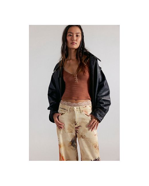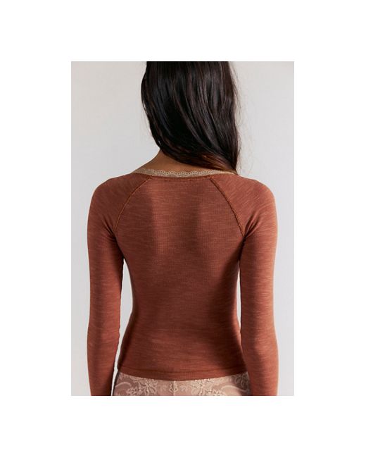Layers of lace adorn this long-sleeve top from Intimately, featuring a V-neckline, a front button closure, and a ribbed, form-fitting design for an essential style that pairs perfectly with your favorite wide-leg denim and mini skirts. * Ribbed cotton fabrication * Cropped long-sleeve fit * V-neckline * Button-front closure A Little Bit Layering Top by Intimately at Free People in Argan Oil, Size: XS