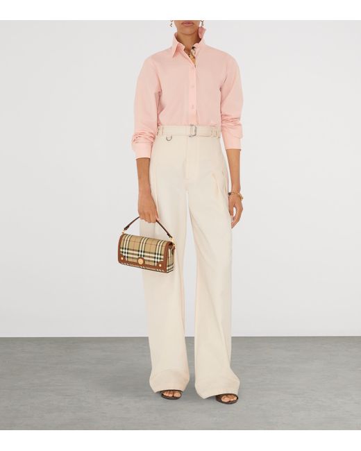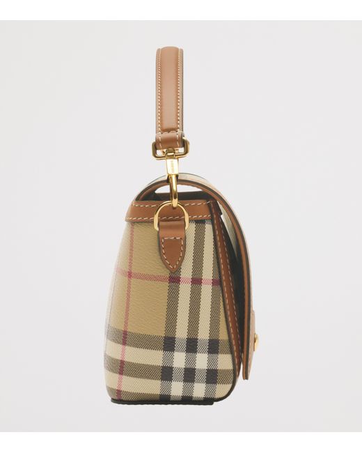 A motif found on the lining of its trench coats since the 1920s, Burberry's check has become synonymous with the label's outerwear legacy and refinement. With this top-handle bag, the motif takes centre stage among the canvas and calf leather construction, eschewing brazen logos for an assertive hint at brand allegiance.