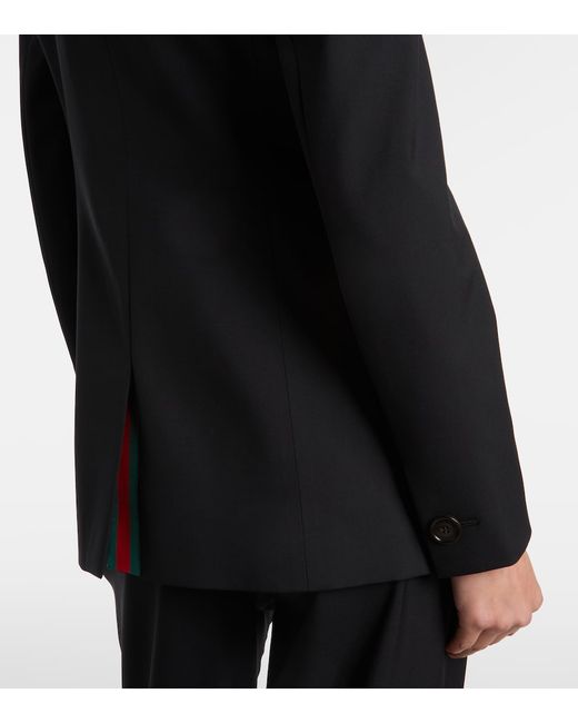Material: 100% wool. Care instructions: dry clean. Made in Italy. Designer color name: Black. Item color: black. Details: 65% viscose, 35% cotton. Lining: 100% viscose. Contains non-textile parts of animal origin. Closure: double-breasted (four buttons). Pockets: flap pockets, internal pockets. Vent: single. Cuff: one button. Wool.