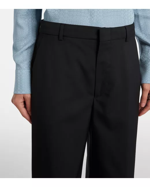 Material: 100% wool. Care instructions: dry clean. Made in Italy. Designer color name: Black. Item color: black. Lining: 100% cotton. Lining II: 100% viscose. Contains non-textile parts of animal origin. Closure: zipper fly, button and hook fastenings. Pockets: side slit pockets, back pockets. Belt loops. Wool.