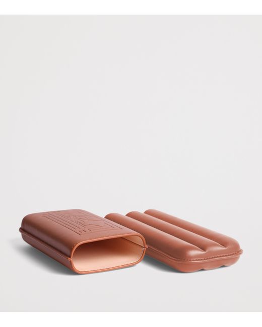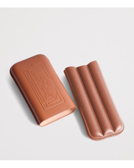 Defined by its smooth, refined silhouette, this cigar case is a testament to Swaine's sophisticated leather work and artisanal precision. The robust construction provides superior protection, while the elegantly curved interior is precisely moulded to hold up to three cigars, making it an indispensable item for the discerning collector.