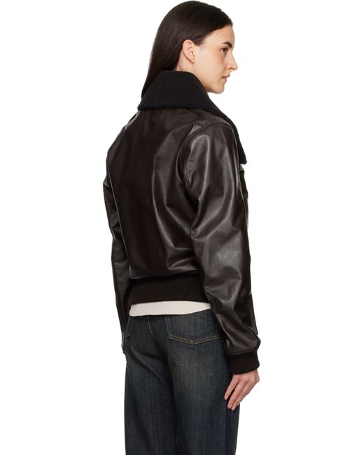 Buffed calfskin jacket. · Detachable lambskin shearling trim at spread collar · Two-way zip closure · Welt pockets · Rib-knit hem and cuffs · Logo hardware at back collar · Welt pocket at interior · Twill lining Supplier color: Umber brown fluid calfskin