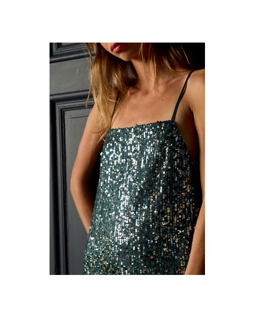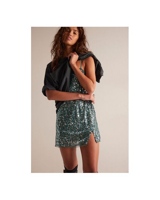 This dazzling mini slip from Intimately is featured in a lightweight fabrication with a straight neckline, side slit, and sequin embellishments for an enchanting finish. * Lightweight fabrication * Straight neckline * Adjustable shoulder straps * Side slit Midnight Kiss Mini Slip by Intimately at Free People in North Sea Combo, Size: XS