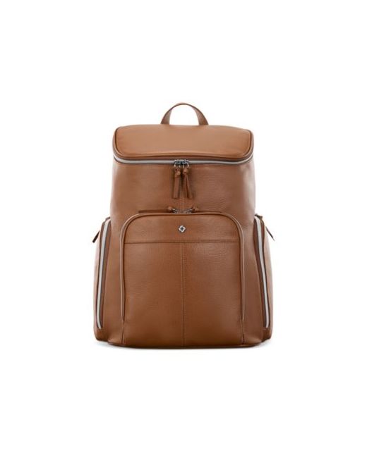 Crafted from supple pebbled leather, the Deluxe Leather Backpack from Samsonite effortlessly supports your dynamic lifestyle while elevating your look. It features padded laptop and tablet sleeves, a spacious front pocket, two side zippered pockets for your water bottle or umbrella, and comfortable shoulder straps.