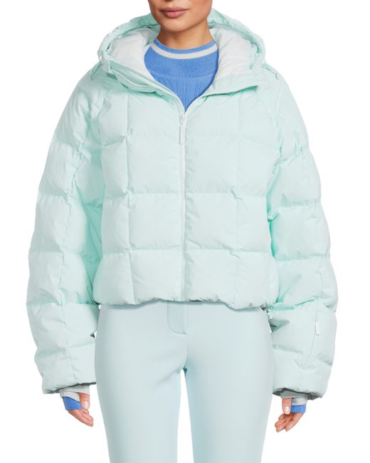 Cordova's Oza jacket elevates the typical puffer aesthetic with a quilted down shell and brimmed hood. This cropped design features Aquaguard zippers, a ski pass pocket on the sleeve, interior and two side pockets, and a snow skirt. Brimmed toggle hood Long sleeves Sleeve ski pass pocket Side zip pockets Interior pocket Snow skirt Front zip closure 100% polyamide Lining: 100% polyamide Fill: 90% duck down/10% feathers, 700 fill power Machine wash Imported SIZE & FIT About 23.25" from shoulder to hem Model measurements: 5'10" tall Model is wearing a US size Small. Outerwear And Swimwear - Down > Cordova > Saks Fifth Avenue. Cordova. Color: Iceberg. Size: XS.