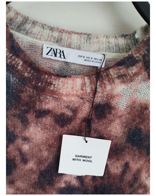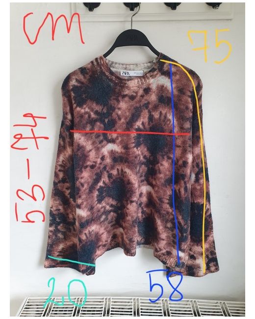 measurements on the picture This Zara jumper is a stylish and comfortable choice for the colder seasons. Made from a 52% wool blend, it features a round neck and long sleeves for extra warmth. The oversized fit adds a relaxed and trendy element to the grey patterned design, making it a versatile option for casual occasions. Perfect for autumn, winter, or spring, this pullover jumper from Zara is a must-have addition to any woman's wardrobe.