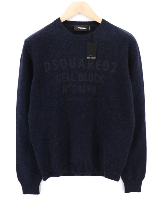 Women's Dark Blue S Navy Logo Wool Alpaca Long Sleeve Pullover Jumper