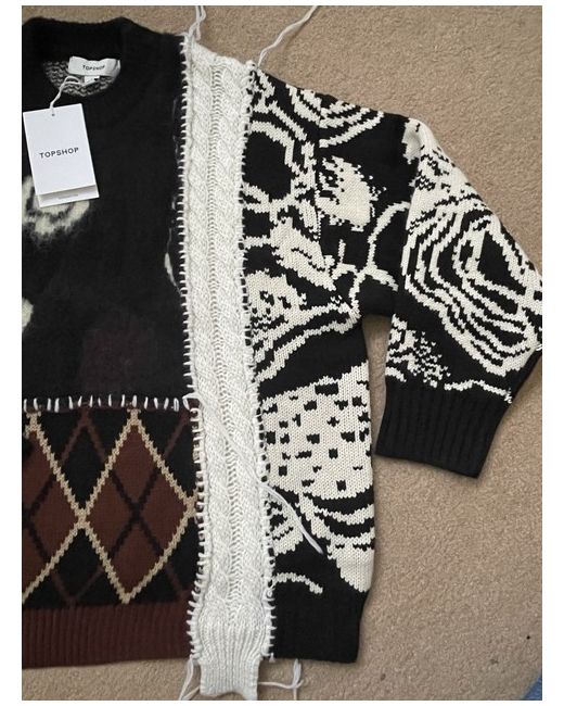 #topshop 90s inspired patchwork jumper. Wool blend. Current collection. Size small. RRP £65 New. #90s #grunge #wooljumper #cosyjumper #topshopjumper #topshopsweater #warmsweater #woolsweater #y2k #vintage #tiktok #winterjumper #vogue #fashionfinds #trendingnow #uniquejumper Gives #acnestudios vibes.