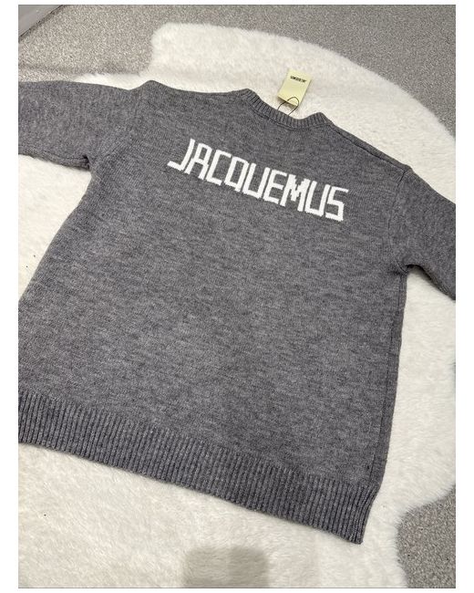 This Women's Jacquemus Jumper in grey, size L, is a stylish and comfortable piece perfect for the autumn season. Made from wool knit fabric, this pullover features a round neckline and long sleeves, offering a regular fit. The iconic Jacquemus brand adds a touch of luxury to this classic jumper, ideal for everyday wear or dressing up for a more formal occasion. The simple yet elegant design in a neutral grey colour makes it a versatile addition to any woman's wardrobe.
