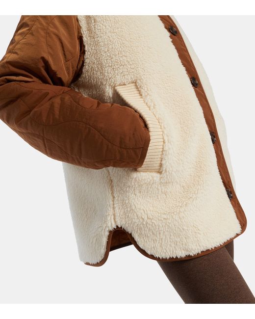 Material: 100% polyester. Care instructions: machine wash at 30 degrees. Made in China. Designer color name: Sandshell/Cocoa Dust. Item color: brown, white. Trim: 64% acrylic, 28% wool, 7% polyester, 1% elastane. Filling: 100% polyester. Closure: buttoned front. Pockets: welt pockets.