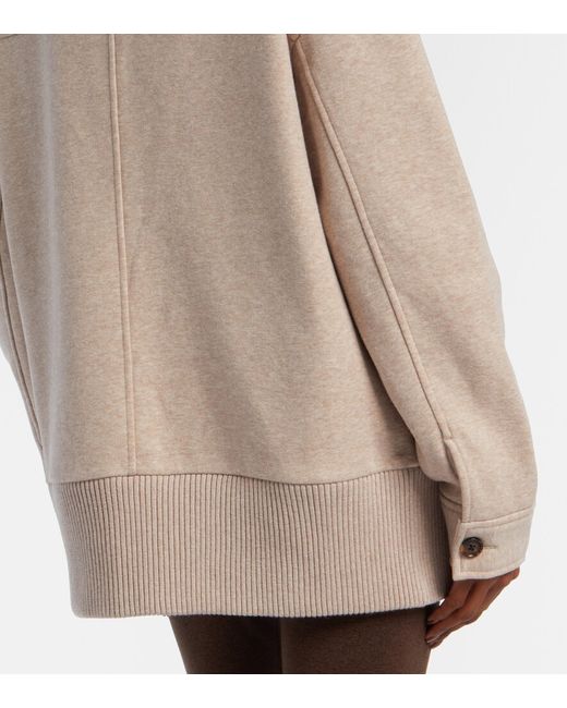Material: 85% cotton, 15% polyester. Care instructions: dry clean. Made in China. Designer color name: Taupe Marl. Item color: beige. Other inner trims: 100% cotton. Trim: 100% cotton. Closure: buttoned front. Pockets: welt pockets. Hem: ribbed. Cotton.