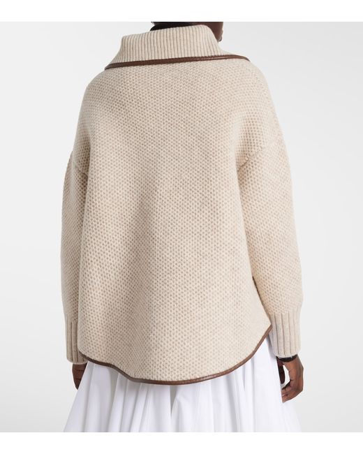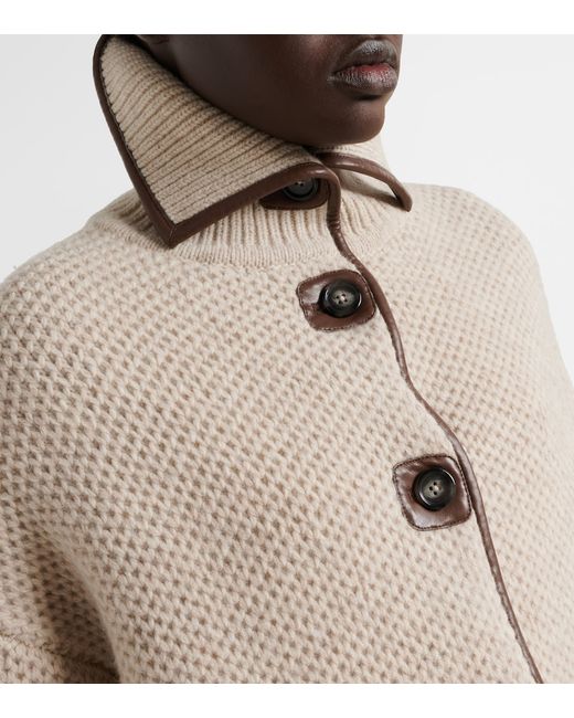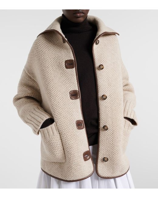 Material: 100% wool. Care instructions: dry clean. Made in China. Designer color name: Bone Melange. Item color: beige, brown. Trim: 55% polyurethane, 45% cotton. Closure: buttoned front. Pockets: patch pockets. Wool.