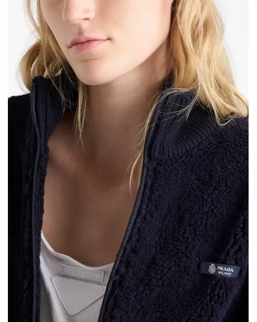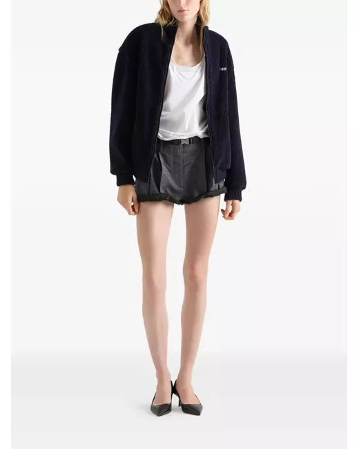 blue ribbed knit collar long sleeves ribbed knit cuffs zip closure zip pockets