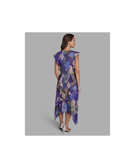 Add movement and romance to your step with the handkerchief-hem ruffle on this Bcbg midi dress, featuring a V-neck. The sleeveless design and hidden back zipper create an elegant, fluid silhouette perfect for special occasions.