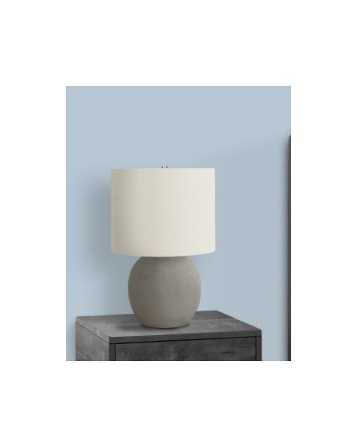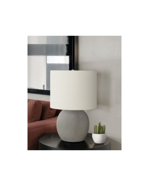 This stylish and fashionable 20 table lamp with a gray concrete globe-shaped base and topped with a contrasting ivory linen drum shade, is the perfect accent to brighten any room. Featuring a 3-way switch holding a single bulb not included with an output of 100W/120V.