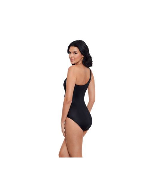Go for shoulder-baring chic in this sleek look from Miraclesuit, a sophisticated one-piece with allover control and sheer accents.