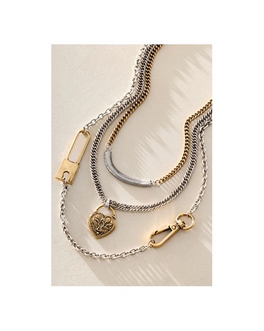 Designed to add effortless edge to absolutely every look, this so cool necklace is featured in a layered silhouette with defined chains, fun charms, and mixed metals for added dimension. **Features:** Layered style, adjustable fit, lobster clasp closure, mixed color metals, defined charms and locks **Why We ❤ It:** The perfect done-in-one piece to pair with anything from a super casual look to a more formal ‘fit, this forever essential necklace is sure to be a staple in your jewelry collection for countless years to come. Last Call Layered Necklace at Free People in Mixed Metal