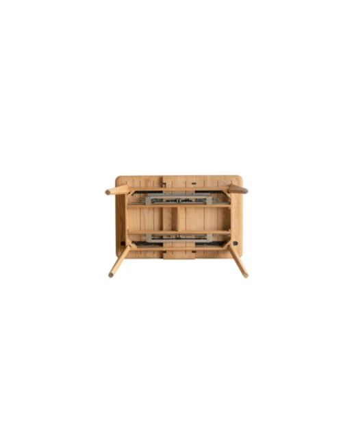 Solid oak farmhouse dining table, extendable from 47.2" to 59.0". Seats up to 10. Rounded corners, water and scratch-resistant. Easy assembly.