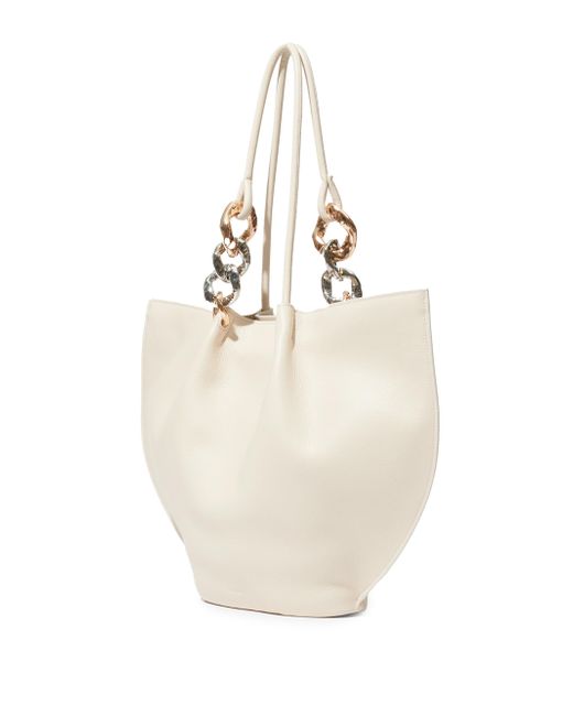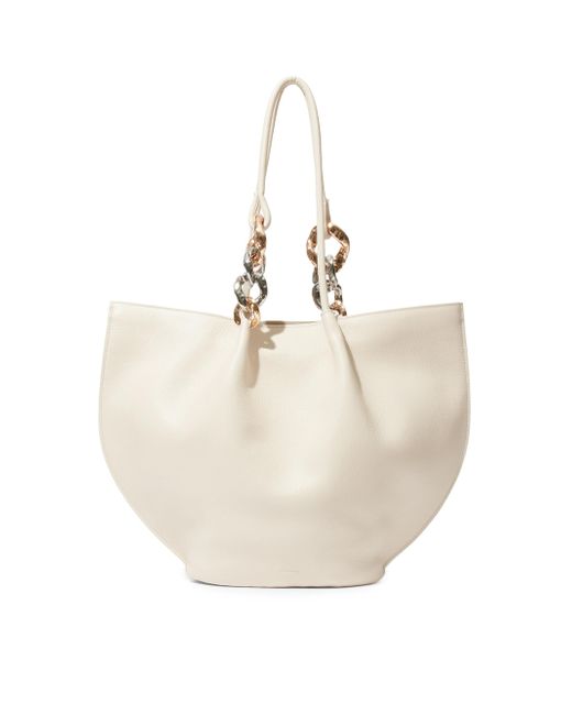 This Arlo tote bag from SIMKHAI is crafted of pebbled leather and designed with chain-links on the shoulder straps. Two shoulder straps Leather Lining: polyester Imported SIZE About 16.75"W x 12.25"H ABOUT THE BRAND Mediterranean-inspired prints and luxe silhouettes are mainstays of the Italian label, launched in 1985 by Domenico Dolce and Stefano Gabbana. The eye-catching menswear line includes a lineup of sleek clothing, shoes and accessories. Handbags - Collection Handbags > Simkhai > Saks Fifth Avenue. SIMKHAI. Color: Cream.