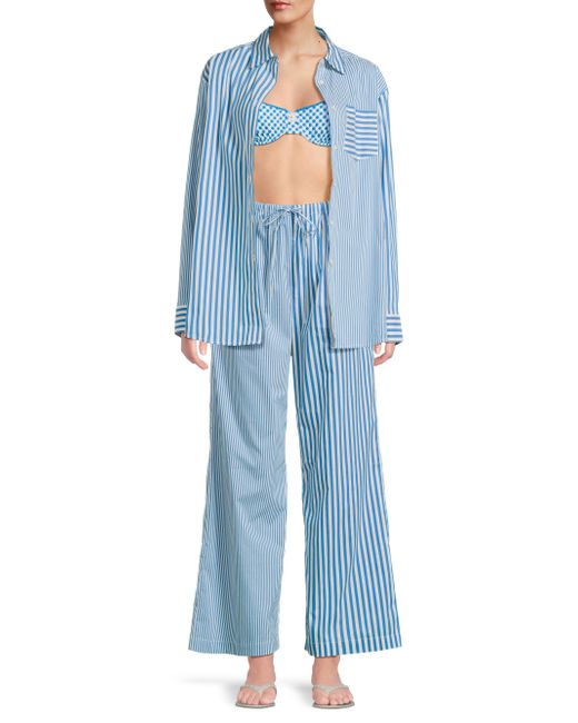 Cut in a relaxed fit, the Ashling striped pants from Solid & Striped are crafted of a stretch cotton poplin, featuring a high-rise, wide-leg silhouette. Drawstring, elasticized waistband Side slip pockets 70% cotton/27% nylon/3% spandex Hand wash Imported SIZE & FIT Rise: about 12" Inseam: about 40" Leg opening: about 24" Model measurements: 5'10" tall Model is wearing a US size Small. Outerwear And Swimwear - Contemporary Swim > Solid & Striped > Saks Fifth Avenue. Solid & Striped. Color: Cosmic Blue. Size: Large.