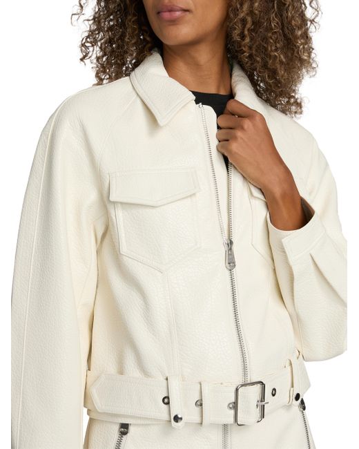 Cinq à Sept's Saffira jacket features a moto-inspired belt at the hem, chest flap pockets, and a zip-front closure. Spread collar Long sleeves, barrel cuffs Chest flap pockets Belted hem Front zip closure 80% viscose/20% cotton Lining: 100% polyester Dry clean Imported SIZE & FIT About 21.25" from shoulder to hem Model measurements: 5'10" tall Model is wearing a US size Small ABOUT THE BRAND Inspired by the radiant, magical hours between 5 and 7 PM-which is what the label's French name translates to-founder Jane Siskin designs sophisticated, feminine pieces for both workweek and the weekend. The designer's silhouettes also play with volume and eye-catching trimmings-perfect for cocktails or a special night out. Contemporary Sportswear - Cinq A Sept > Cinq à Sept > Saks Fifth Avenue. Cinq à Sept. Color: Ivory. Size: XXS.