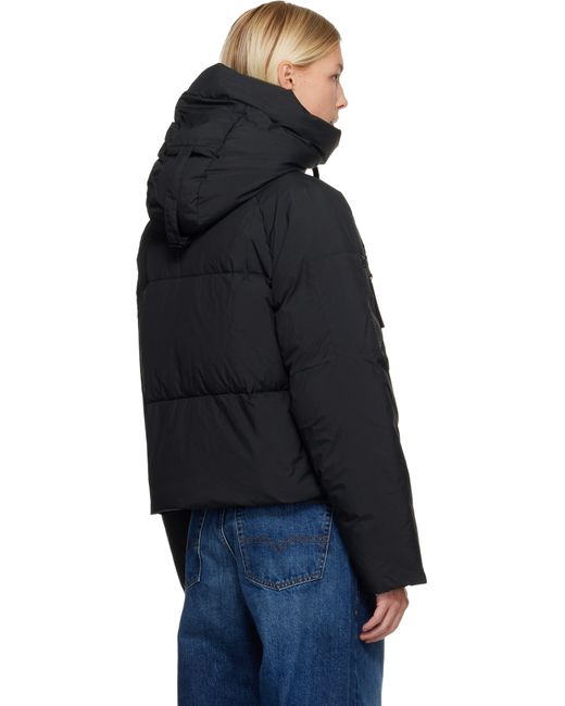 Down-filled and quilted nylon taffeta jacket. · Water-repellent · Cinch strap at hood · Stand collar · Concealed zip closure at press-stud placket · Zip pockets at waist · Concealed bungee-style drawstring at hem · Raglan sleeves · Embroidered logo patch at sleeve · Zip pocket at sleeve · Inset rib-knit cuffs · Logo-woven shoulder straps at interior · Patch pocket at interior · Fully lined Supplier color: Black