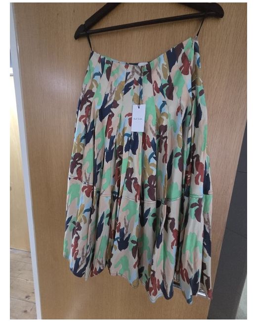 This Paul Smith women's skirt in size S is a casual midi skirt made from cotton, featuring a colourful multicoloured design. The skirt has a zip closure, a flare style, and is recommended for autumn wear. It is not vintage and is not handmade, but it is personalised as it is designed by the brand Paul Smith. The garment care instructions recommend dry cleaning only.