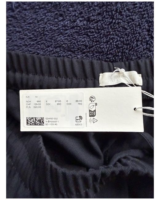 Arket Hopsack drawstring trousers, dark blue, size EU 52 ID 1224930002 Trousers crafted from a wool-blend hopsack weave. Cut for a relaxed, straight fit and styled with elastics and a drawstring at waist. Pockets at side seams and patch pockets at the back. Zip fly. These trousers contain 46% RWS wool, certified by control union 815347. Products certified to the Responsible Wool Standard (RWS) contain wool fiber from farms independently certified. Composition Shell: Polyester 54%, Wool 46% Lining: Cotton 100% Shell: RWS wool 46% Care Instructions Dry clean Only non-chlorine bleach when needed Line dry Iron at medium temperature Wash at or below 30°C - gentle cycle Medium iron Use mild detergent 7442