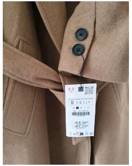 Brand new with tags Ladies Longline belted wool blend coat from Zara Size Small Colour Camel