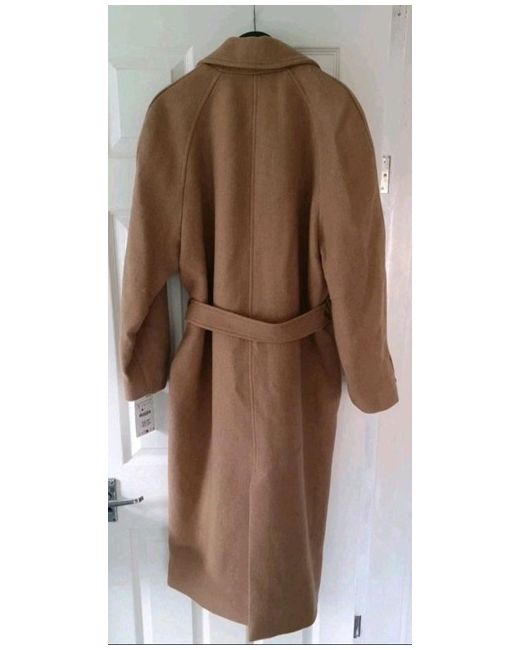 Women's Beige Wool Blend Camel Belted Longline Coat Small S 9147/298