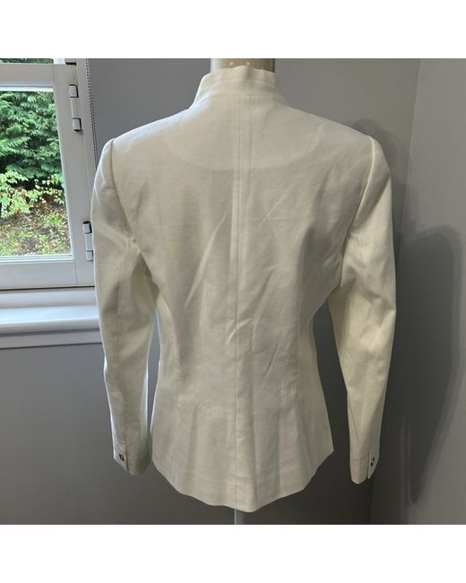 This Ted Baker women's jacket in white is a stylish and versatile addition to any wardrobe. Made from a linen blend outer shell and insulated with polyester, this short jacket is perfect for casual occasions. With a smart jacket style and a size 5 (UK12-14), this brand new jacket from Ted Baker is sure to make a statement.
