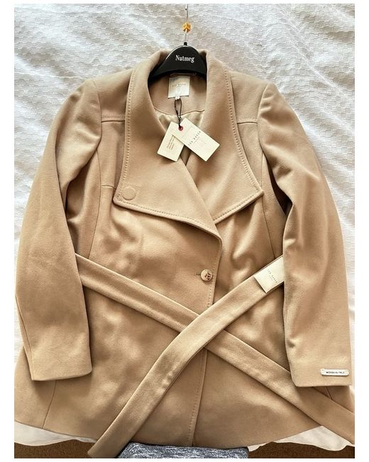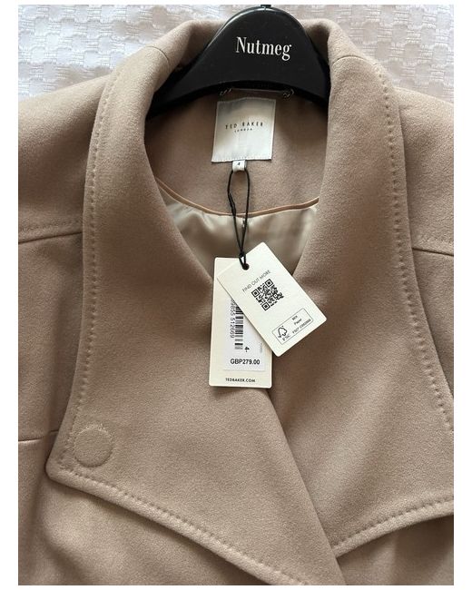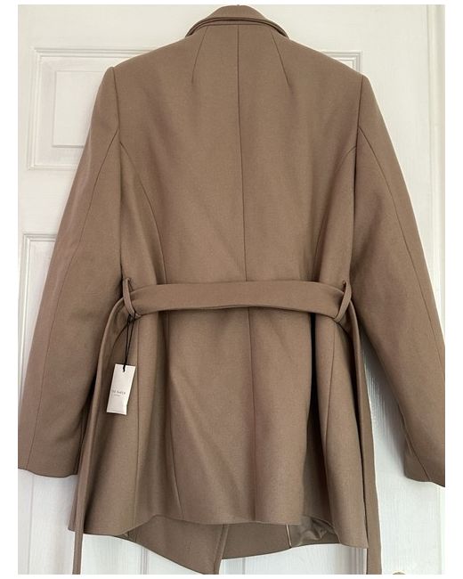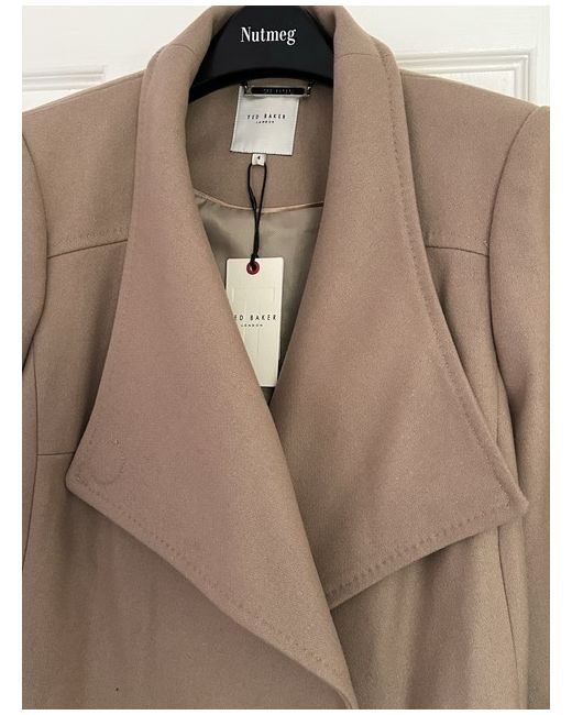 This Ted Baker women's coat in size 4 is a stylish and versatile addition to any winter wardrobe. Made from wool, the short length overcoat features a button accent and a regular fit, making it perfect for casual occasions. The beige colour and classic design of the coat make it a timeless piece that can be worn for years to come. Just remember to dry clean only to keep it looking its best.