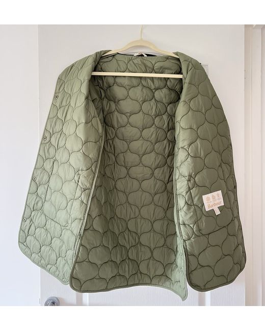 Barbour quilted jacket in chic olive green with corduroy collar and beautiful Kew garden floral lining. Special edition for the national trust. Effortlessly country chic style, weather proof, super stylish. Quite a rare edition from Barbour especially new condition! Measurements - shoulder 16 inches, chest 40 inches, length 33 inches.
