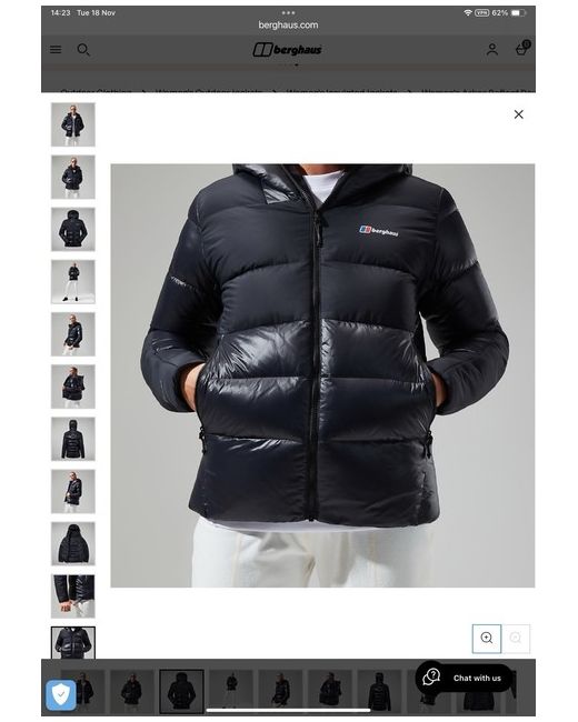 Fabulous warm and stylish black shiny and Matt Arkos reflect black down jacket by Berghaus in size 18. Lots of features. Cost. £140. Thanks for looking.