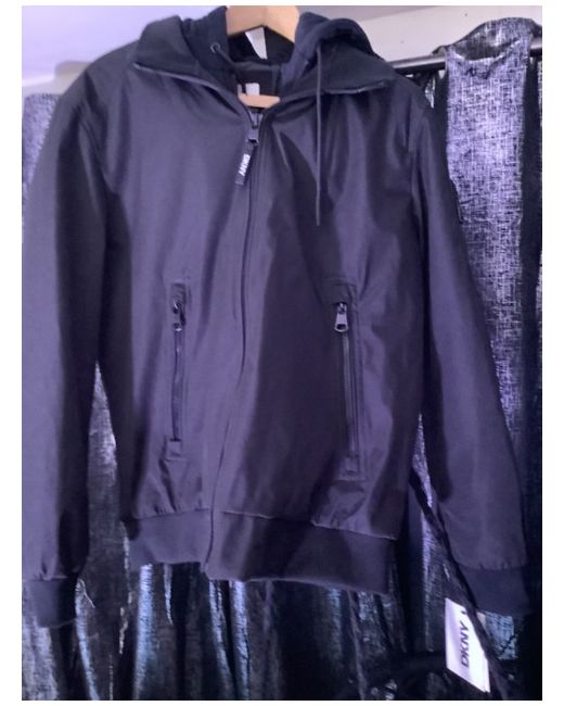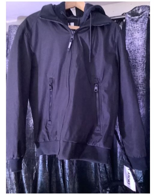 This DKNY black medium jacket is a stylish and versatile addition to any woman's wardrobe. Made by a reputable brand like DKNY, this jacket is sure to be of high quality and fashionable design. The medium size ensures a regular fit, making it suitable for a variety of body types. Perfect for everyday wear or for dressing up an outfit, this black jacket is a timeless piece that can be easily paired with any outfit.Pockets on the arms . 1 deep pocket inside .unzippable hood to transform jacket.BRAND NEW Never been worn.with tags bought for 180 dollars .Will except 129.99