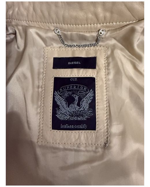 This Diesel women's jacket in size S is a stylish and versatile addition to any wardrobe. Made from leather with a polyester insulation material, it provides warmth and protection while still looking sleek. The short jacket length and regular fit make it perfect for casual occasions, and the beige colour adds a touch of elegance. Machine washable and with no pattern or vintage design, this basic jacket stays on trend with the Diesel brand's quality and style.