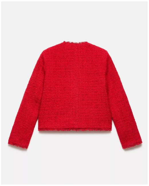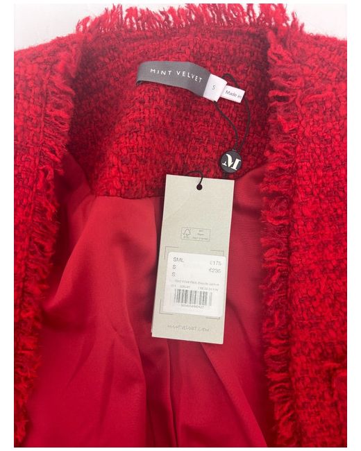 With a luxurious blend of polyester, wool, and acrylic, the jacket features long sleeves and a flattering silhouette. The bold red colour adds a pop of colour to any outfit, making it a perfect choice for adding a touch of sophistication to your look.