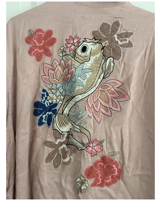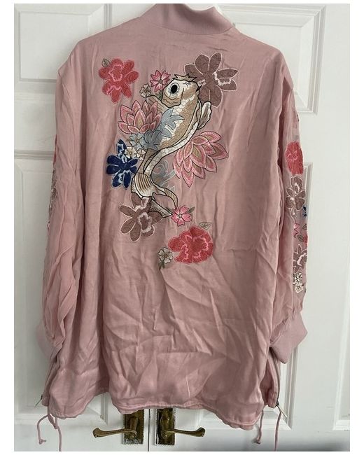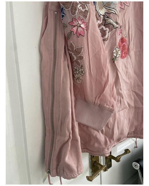 The French Connection Women's Pink Tea Gown Jacket in size medium is a stylish and casual outerwear option for women. Made from viscose with polyester insulation, this bomber jacket from the French Connection brand is perfect for a casual occasion. The pink colour adds a fun and vibrant touch to the overall look, making it a versatile piece for any wardrobe.
