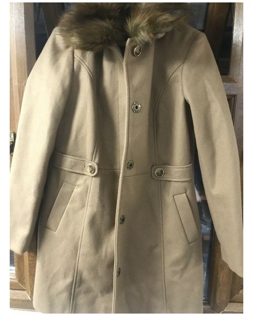 Womens Jacket Faux Wool Fur Collar Button Through A Line Coat